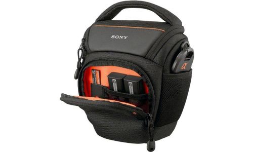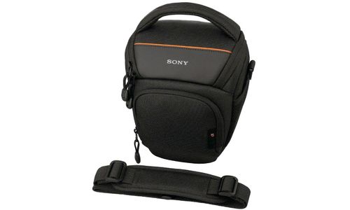 Zachte draagtas beschermt de camera en bevestigde standaard zoomlens. Beschermt DSLR-camera en bevestigde lens. Draagbaar met riem, handgreep of over de schouder.