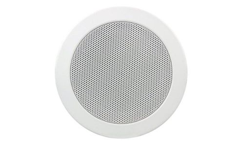 Inbouwluidspreker 100V, slechts een beetje groter dan een halogeenspot. Voorzien van een volledig metalen frame. Witte uitvoering. Ook verkrijgbaar in wit of zilverkleurig.