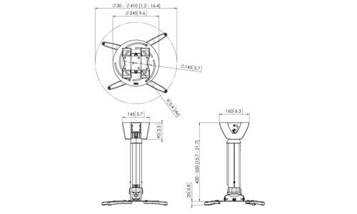 Vogel's Professional PPC 2540 - Bevestigingskit (plafondbevestiging, interfaceplaat, telescopische paal) - voor projector - zilver - te bevestigen aan het plafond