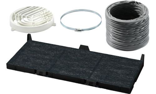 Voor recirculatie. Bestaande uit: koolstoffilter, luchtverdeling, flexibele slang ø150 mm., 800 mm. lang met 2 slangklemmen, bevestigingsmateriaal.