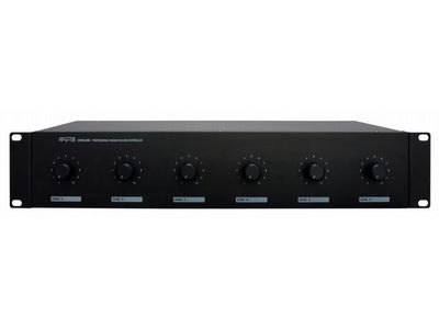 Volumeregelaar met 6 100 V volumeknoppen die elk 60W vermogen aankunnen. Dankzij de Euroblock-connectoren aan de achterzijde wordt installeren kinderspel. De knoppen hebben een 11-staps trapsysteem en zijn uitgerust met een 24V prioriteitsrelay, waardoor de microfoon altijd aan het hoogste volume weerklinkt.