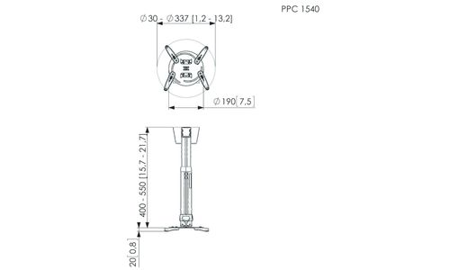De PPC 1540 is een uiterst flexibele projectorsteun, speciaal ontwikkeld voor de nieuwste generatie projectoren met een gewicht van maximaal 20 kg. De projector-interface is voorzien van een functie voor nauwkeurige uitlijning met het projectieoppervlak. De projector blijft na uitlijning in exact dezelfde positie. Met de unieke frictiering kan alle speling uit de interface verbindingen worden gehaald, waardoor deze steun een stevige en uiterst stabiele oplossing is.