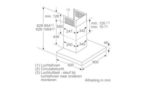 ++ Breedte: 90 cm ++ Afzuigkracht (hoogste stand): 420 m³/h ++ Geluidsniveau (Maximum): 57 dB(A) ++