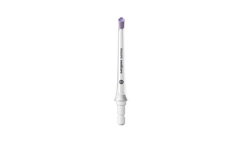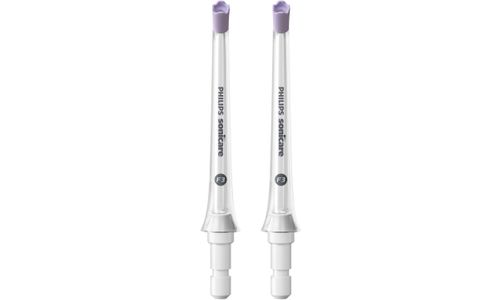 Voor een maximale dekking en extra grondige reiniging gebruikt u het Quad Stream-opzetstuk om het water te concentreren in vier brede stralen tussen de tanden en langs de tandvleesrand. De zachte rubberen geleider spaart uw tandvlees en elk opzetstuk is in een handomdraai te bevestigen en te verwijderen.
