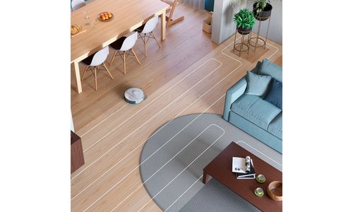 De robot verhoogt automatisch de zuigkracht wanneer deze op een vloerbedekking of tapijt rijdt om daarin* diep verborgen, fijne stofdeeltjes op te zuigen.